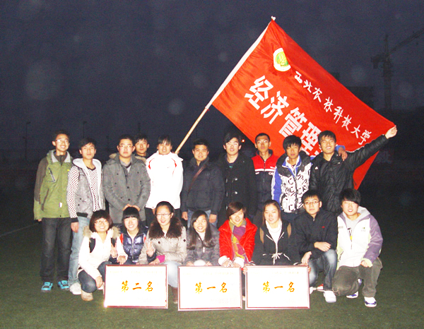 12月14日,我校2011年冬季长跑比赛在北校区田径场圆满落下帷幕,学校相关部门领导出席了颁奖仪式。经管学院以374分的成绩荣获女子组团体第一名,男子组以338分获得第二名,以712分的绝对优势夺得团体第一名的骄人成绩。