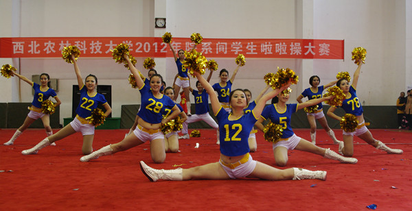 11月11日14时30分,西北农林科技大2012年院系间舞蹈啦啦操比赛于我校体育馆举行。经过紧张激烈的比赛,食品学院最终以总分92.90分取得了第四名的优异成绩。