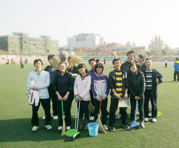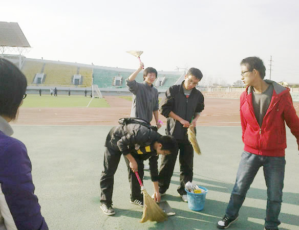 11月23日下午,阳光团工委动科支部动科114、115、116班的阳光团员自愿组成义务服务小组,对北校区体育场进行了一次彻底的打扫。