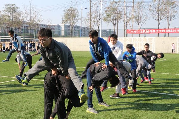 为了积极响应“走出宿舍,走向操场”的号召,激发学生秋冬锻炼激情,丰富新生校园生活,为新生营造健康活泼的学习生活氛围。11月1日,机电学院于小足球场举行了2015级新生趣味运动会,学院党委书记,党委副书记以及全体辅导员老师前往现场观看。